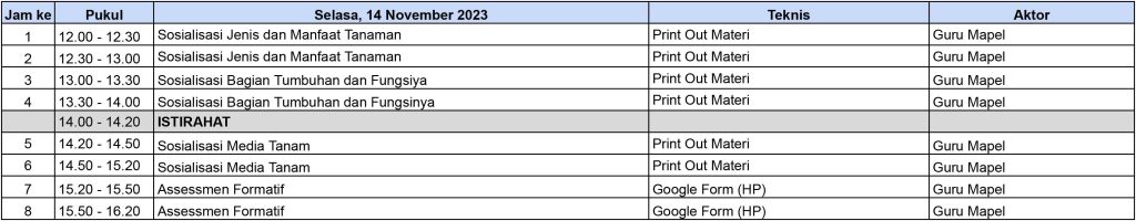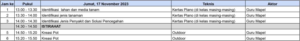 • Setiap kelas mengambil 15 tanaman di ruang guru ( ada 3 jenis, setiap jenis ambil 5 tanaman) lalu ditanam di dalam pot siswa