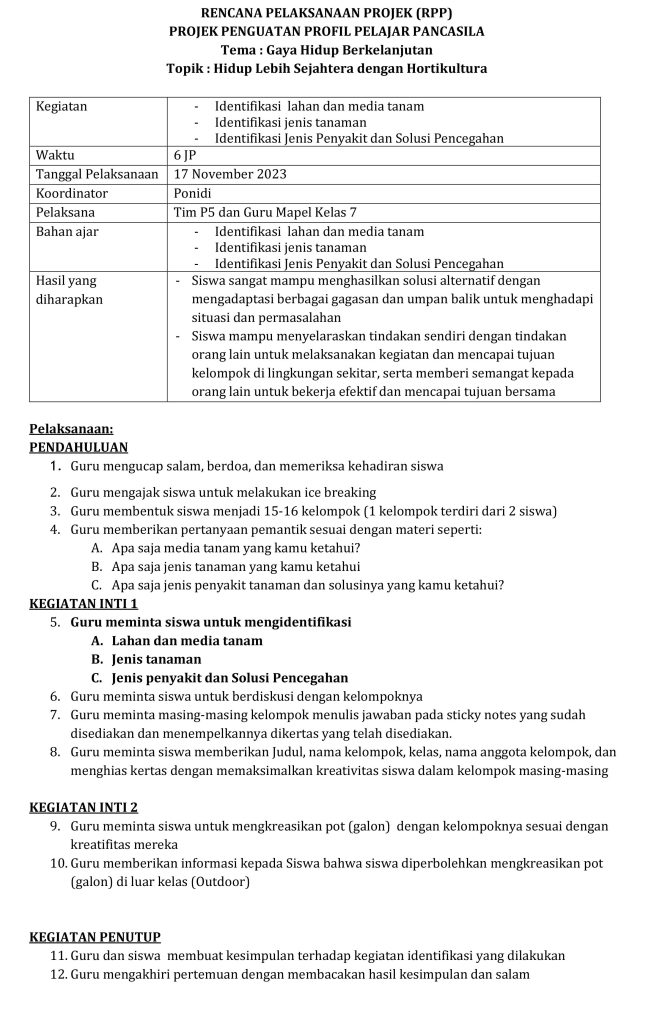 3. Perencanaan kegiatan dalam merawat tumbuhan dengan baik
