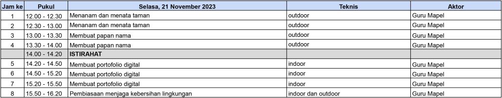 4. Pembagian jadwal dan tugas dalam pelaksanaan projek