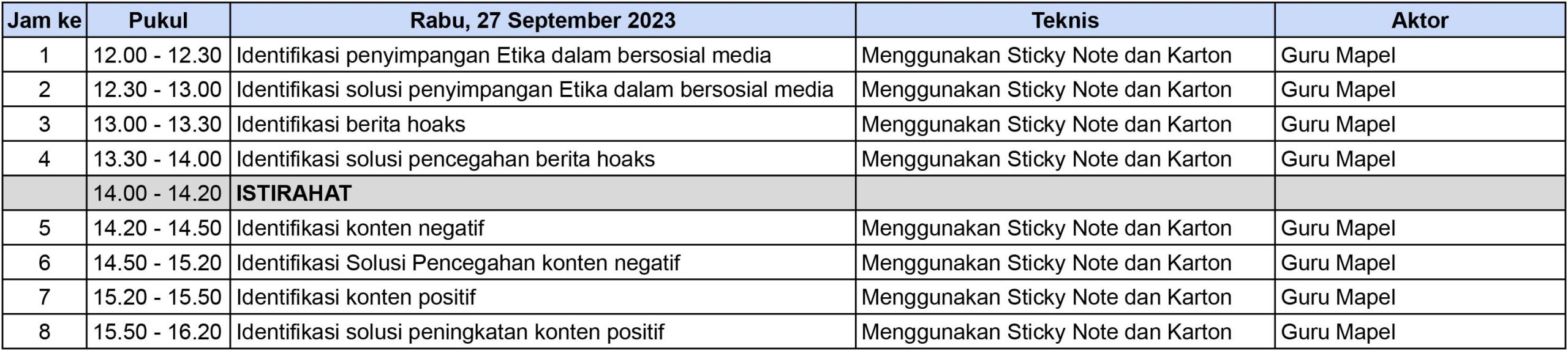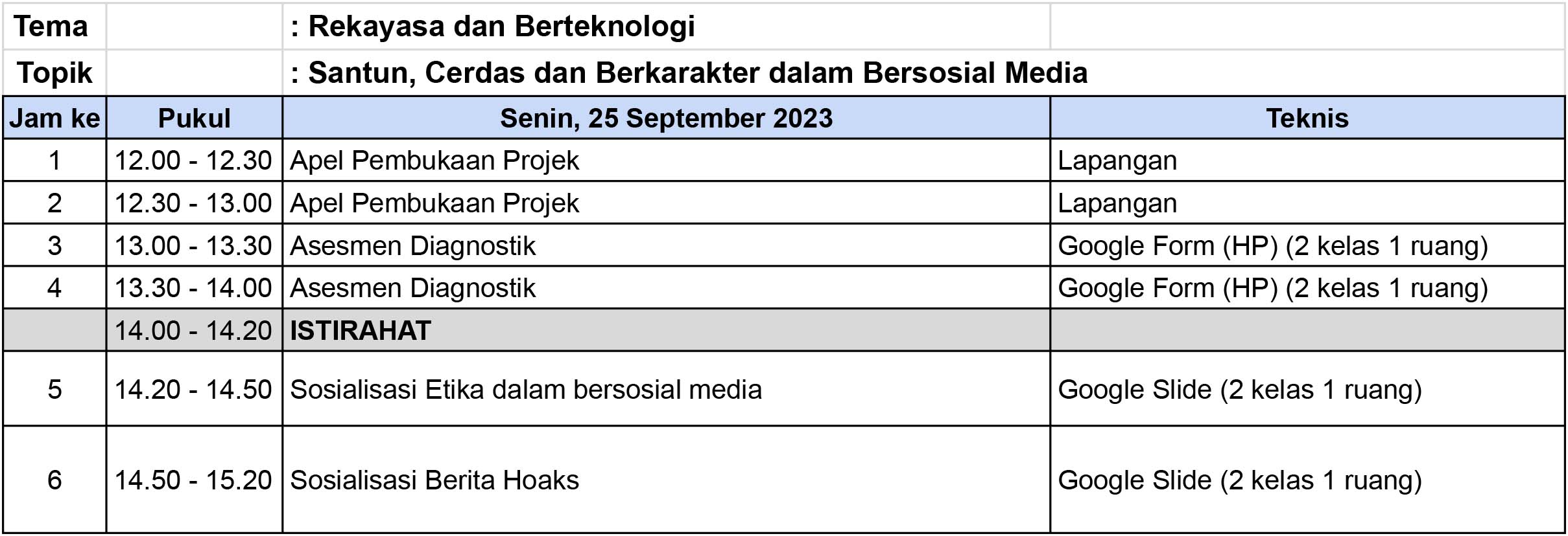 JADWAL PELAKSANAAN PROJEK
