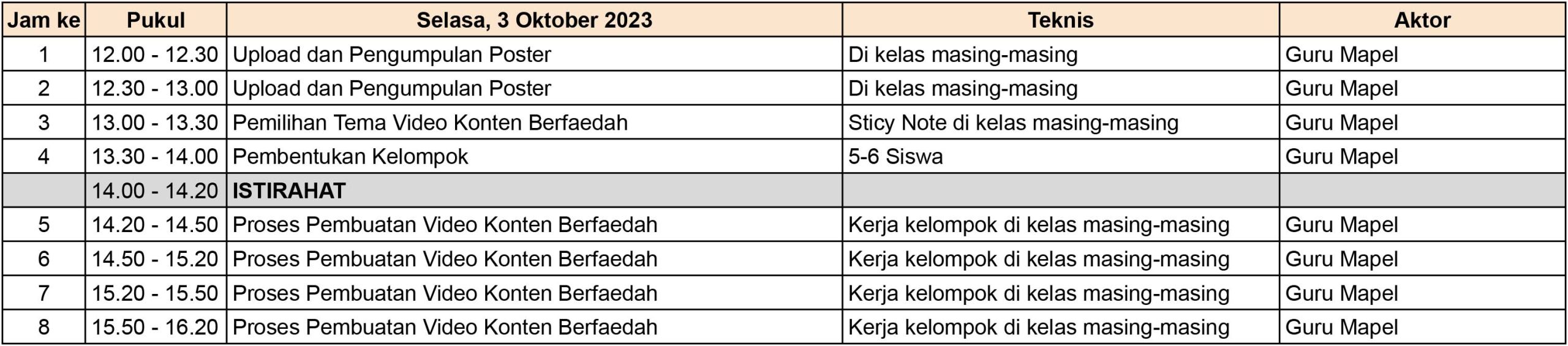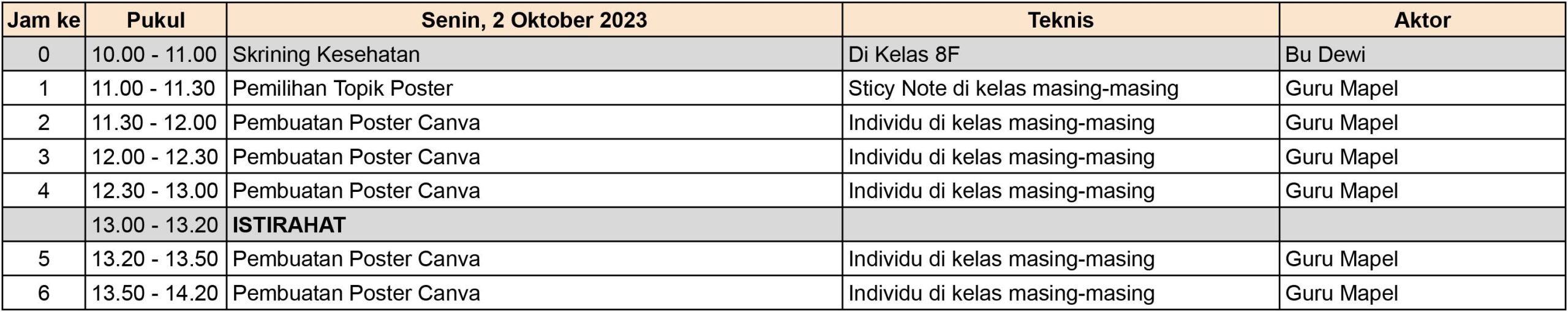 - Cetak/Print Poster dan dikumpulkan pada hari Selasa, 3 Oktober 2023 di Wali Kelas